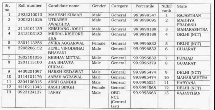 नीट यूजी 2025 के परिणाम घोषित, राजस्थान के महेश कुमार ने किया टॉप