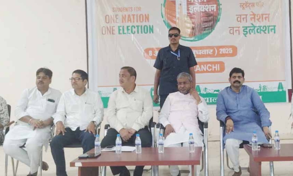रांची: रांची विश्वविद्यालय के इंस्टीट्यूट ऑफ लीगल स्टडीस के सभागार में आज अखिल भारतीय विद्यार्थी परिषद (एबीवीपी) के तत्वावधान में ‘वन नेशन, वन इलेक्शन’ विषय पर एक राष्ट्रीय परिचर्चा का आयोजन किया गया। इस कार्यक्रम में नेता प्रतिपक्ष बाबूलाल मरांडी, कई शिक्षाविद, विधि विशेषज्ञ और विभिन्न विषयों के छात्र-छात्राओं की बड़ी संख्या में उपस्थिति रही।