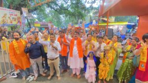 रांची: श्रावण मास की तीसरी सोमवारी में झारखंड की राजधानी रांची स्थित प्रसिद्ध पहाड़ी बाबा मंदिर के मुख्य द्वार पर संध्या समय काफी भव्य महा आरती का आयोजन किया गया जी आयोजन की विशेष बात या रही की भक्तों ने ओमकार में खड़े होकर महादेव की आरती की जिससे पूरा माहौल भक्ति में और सकारात्मक हो गया।