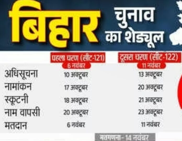 बिहार विधानसभा चुनाव 2025 फेज-1 शेड्यूल