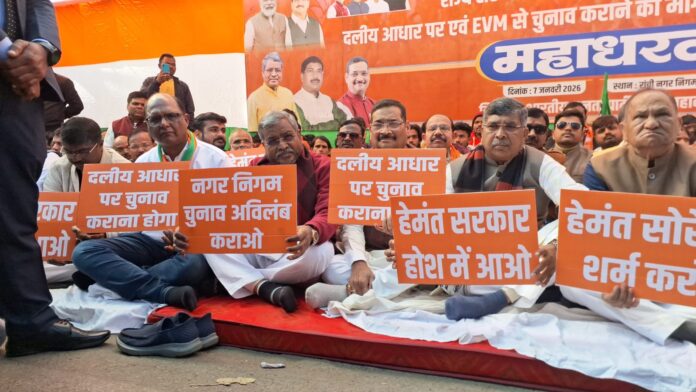 भाजपा कार्यकर्ताओं ने राज्य में नगर निकाय चुनावों में हो रही देरी के खिलाफ आवाज उठाई। उन्होंने ईवीएम के माध्यम से शीघ्र चुनाव कराने और दलीय आधार पर चुनाव सुनिश्चित करने की मांग की।