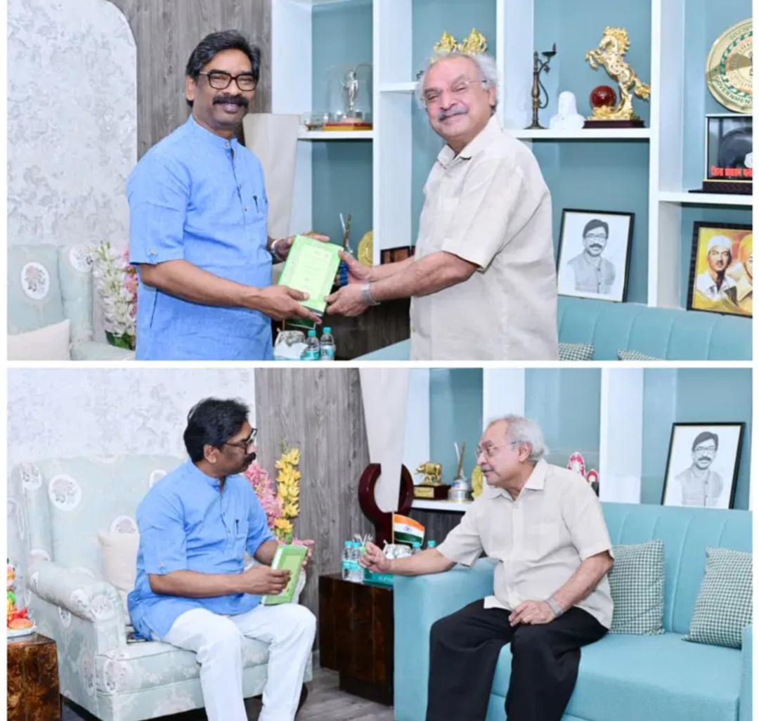 रांची: रांची स्थित कांके रोड के मुख्यमंत्री आवासीय कार्यालय में झारखंड के नवनियुक्त लोकायुक्त अमिताभ कुमार गुप्ता ने मुख्यमंत्री हेमंत सोरेन से मुलाकात की। यह मुलाकात शिष्टाचार भेंट के रूप में हुई, जिसमें राज्य से जुड़े विभिन्न मुद्दों पर सामान्य चर्चा हुई।