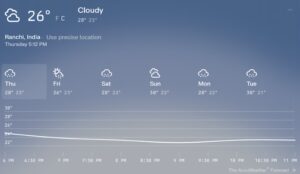 मौसम विभाग की तरफ से दी गई जानकारी के मुताबिक लो प्रेशर सिस्टम के कारण बारिश के साथ-साथ लगातार बादल छाये रहेंगे। इस कारण मौसम में नमी बढ़ेगा और दिन व रात के तापमान में गिरावट होगी। इस कारण थोड़ी ठंडी हवाएं चलेंगी और लोगों को ठंडक महसूस हो सकती है। लगातार बारिश के कारण रांची, जमशेदपुर, धनबाद के शहरी और ग्रामीण इलाकों में जल जमाव की स्थिति बन सकती है।