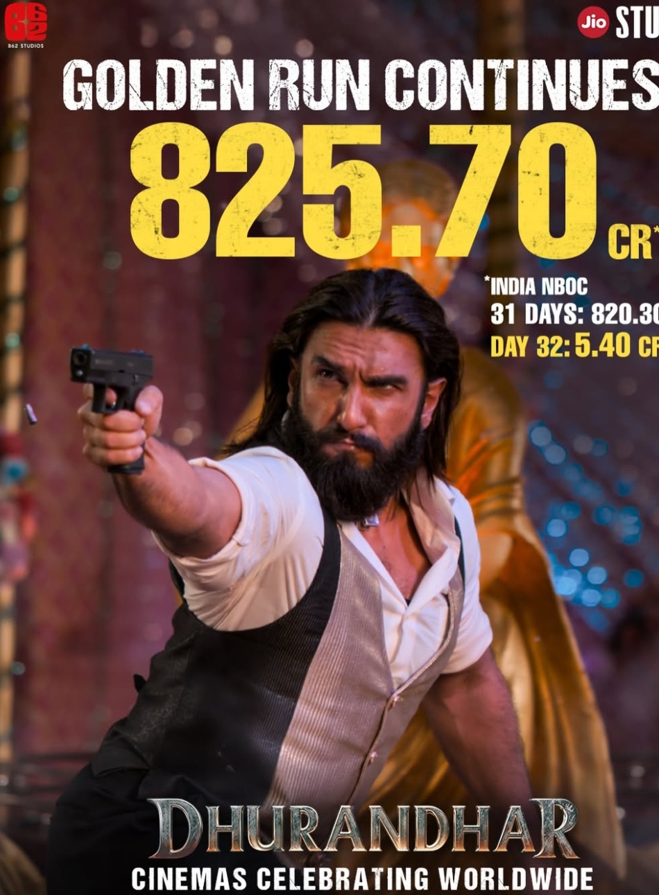 ताजा आंकड़ों के मुताबिक, ‘धुरंधर’ का 31 वें दिन का कुल बॉक्स ऑफिस कलेक्शन 824 करोड़ रुपये से ज्यादा पहुंच चुका है। ट्रेड एक्सपर्ट्स का मानना है कि भले ही अब फिल्म की रफ्तार कुछ धीमी हो गई हो। लेकिन, इसके बावजूद इसका लाइफटाइम बिजनेस 850 करोड़ रुपये के करीब तक जा सकता है।