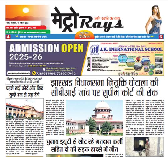 E-Paper Metro Rays E-paper 14th Nov. 2024 Metro Rays By admin - November 14, 2024 0 115 FacebookTwitterWhatsAppTelegramKoo Metro Ray's 14Nov24