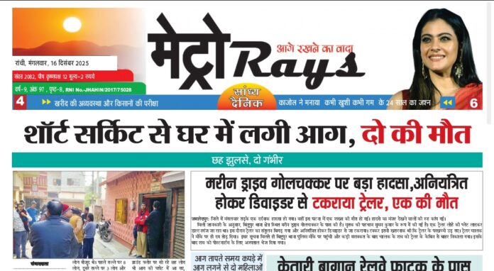 E-Paper Metro Rays E-paper 16th December 2025 Metro Rays By admin - December 16, 2025 0 77 FacebookTwitterWhatsAppTelegramKoo Metro Rays 16 Dec