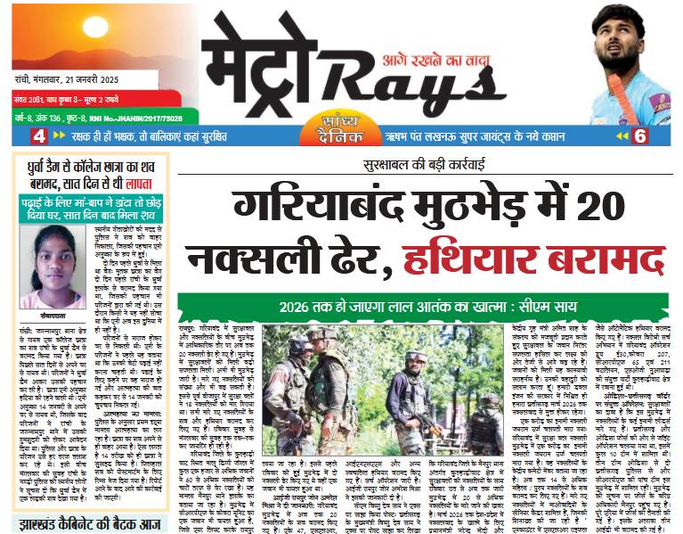 E-Paper Metro Rays E-paper 21st Jan. 2025 Metro Rays By admin - January 21, 2025 0 223 FacebookTwitterWhatsAppTelegramKoo Metro Ray's 21Jan2025-1