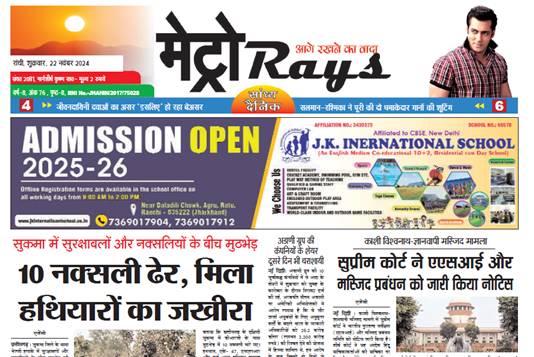 E-Paper Metro Rays E-paper 22nd Nov. 2024 Metro Rays By admin - November 22, 2024 0 153 FacebookTwitterWhatsAppTelegramKoo Metro Ray's 22Nov24