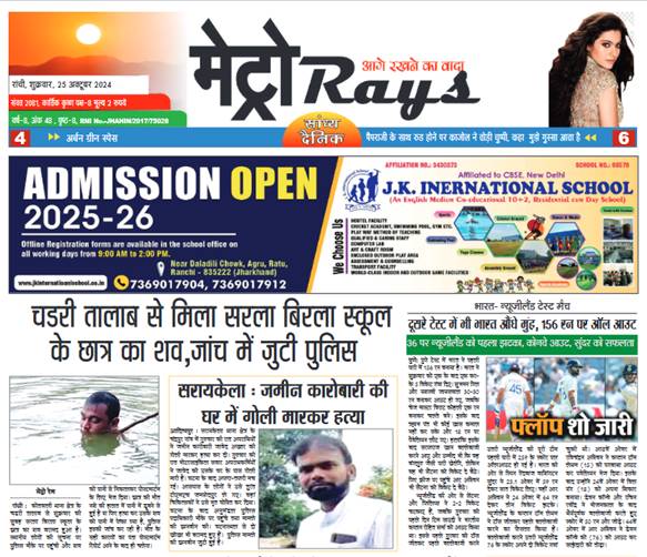 E-Paper Metro Rays E-paper 25th October 2024 Metro Rays By admin - October 25, 2024 0 158 FacebookTwitterWhatsAppTelegramKoo Metro Ray's 25Oct2024-1