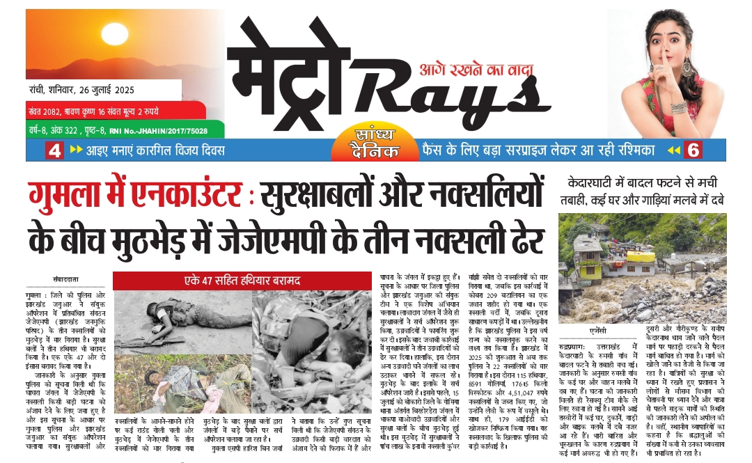 E-Paper Metro Rays E-paper 26th July 2025 Metro Rays By admin - July 26, 2025 0 204 FacebookTwitterWhatsAppTelegramKoo 26 July 2025 Metro rays pdf