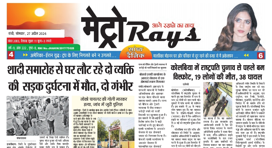 E-Paper Metro Rays E-paper 27th April 2026 Metro Rays By admin - April 27, 2026 0 9 FacebookTwitterWhatsAppTelegramKoo 27 April 2026 metro rays pdf
