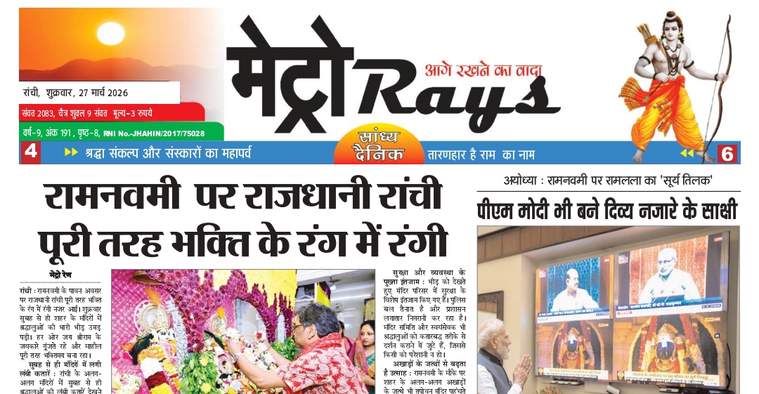 E-Paper Metro Rays E-paper 27th March 2026 Metro Rays By admin - March 27, 2026 0 5 FacebookTwitterWhatsAppTelegramKoo Metro Rays 27 March 2026