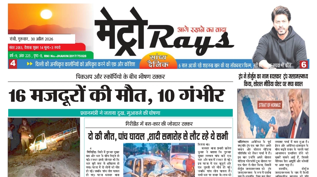 E-Paper Metro Rays E-paper 30th April 2026 Metro Rays By admin - April 30, 2026 0 12 FacebookTwitterWhatsAppTelegramKoo 30 April Pdf Joint Page Metro Rays