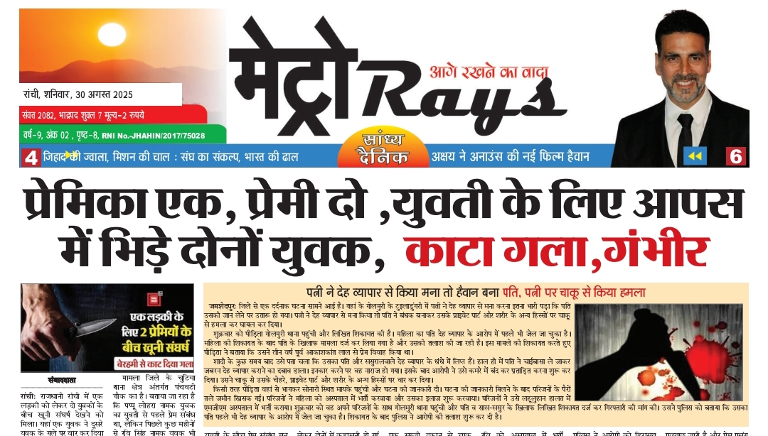 E-Paper Metro Rays E-paper 30th August 2025 Metro Rays By admin - August 30, 2025 0 358 FacebookTwitterWhatsAppTelegramKoo Metro Rays30Aug2025