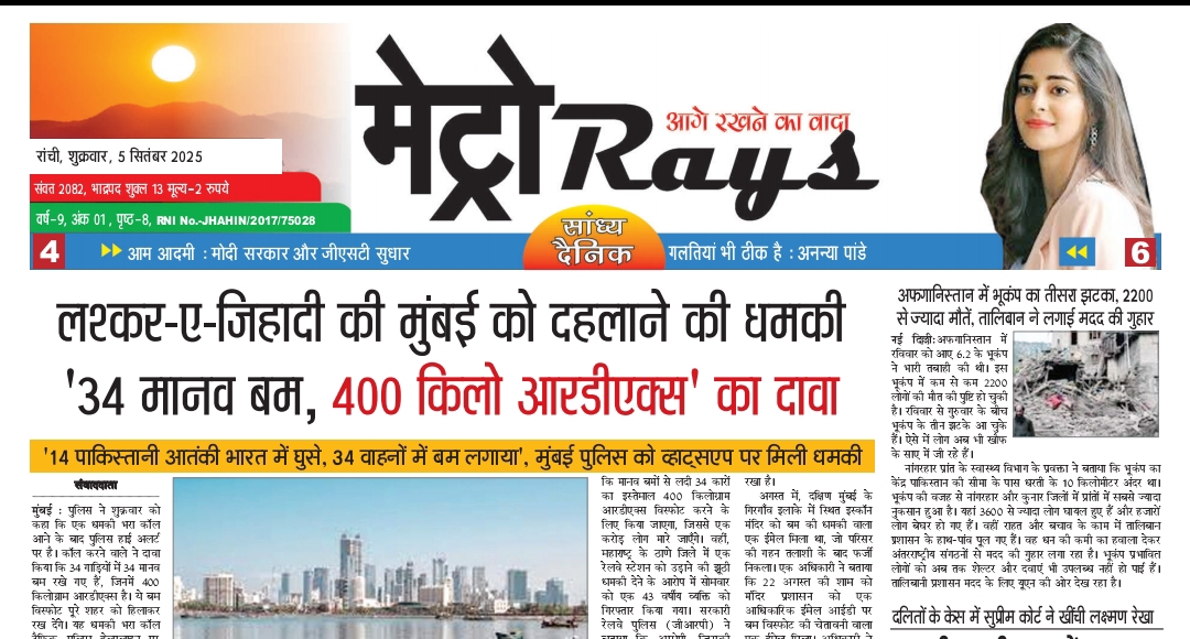 E-Paper Metro Rays E-paper 5th September 2025 Metro Rays By admin - September 5, 2025 0 155 FacebookTwitterWhatsAppTelegramKoo 5 Sep Pdf Metro Rays