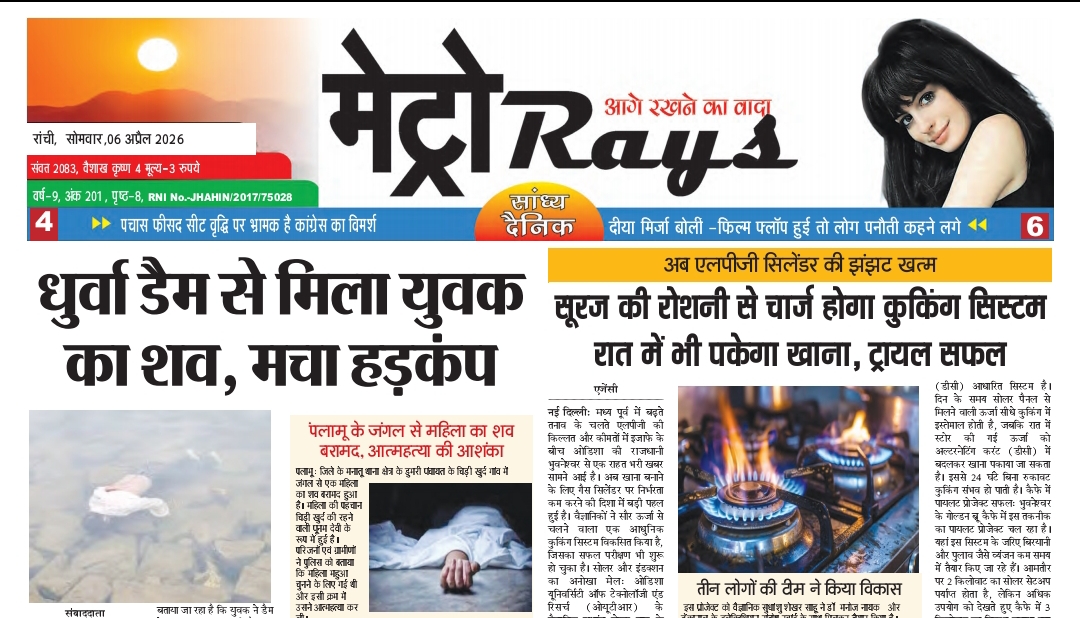 E-Paper Metro Rays E-paper 6th April 2026 Metro Rays By admin - April 6, 2026 0 9 FacebookTwitterWhatsAppTelegramKoo 06 April 2026 metro rays pdf