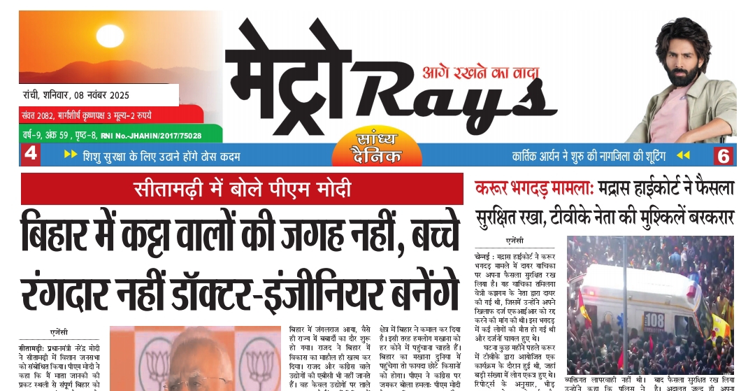E-Paper Metro Rays E-paper 8th November 2025 Metro Rays By admin - November 8, 2025 0 57 FacebookTwitterWhatsAppTelegramKoo metro rays 8 November