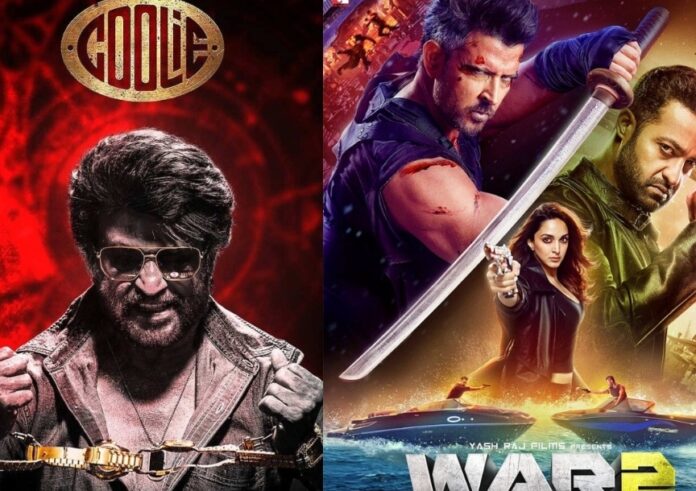 भारत: स्वतंत्रता दिवस वीकेंड पर सिनेमाघर में दो बड़ी फिल्मों का धमाकेदार मुकाबला हुआ जिसमें एक तरफ श्री लोकेश कंगराज निर्देशित कुली जिसमें साउथ सुपरस्टार रजनीकांत ने मुख्य भूमिका निभाया है और दूसरी तरफ अयान मुखर्जी की वार 2 जिसमें ऋतिक रोशन, जूनियर एनटीआर और कियारा आडवाणी ने मुख्य भूमिका निभाया है। दोनों फिल्में काफी हाई बजट की है और स्टार पावर से भरपूर है लेकिन बॉक्स ऑफिस पर बाजी करने वाले फिल्म में कुली आगे निकल गई।
