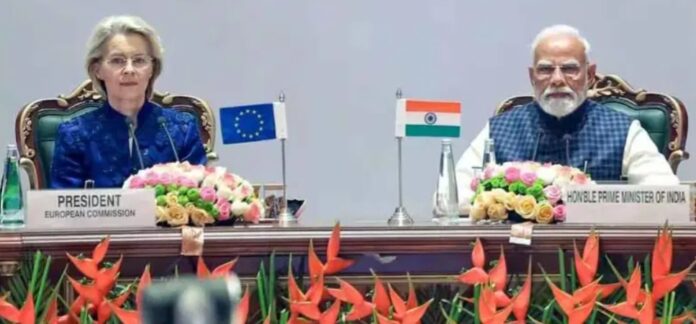 भारत: भारत और यूरोपीय यूनियन (EU) के बीच आज मंगलवार को ऐतिहासिक फ्री ट्रेड एग्रीमेंट (FTA) पर मुहर लगी। इस डील को यूरोपीय नेताओं ने मदर ऑफ ऑल डील्स करार दिया है। इसके बाद, प्रधानमंत्री मोदी और यूरोपियन कमीशन की अध्यक्ष उर्सुला वॉन डेर लेयेन ने भारत मंडपम में आयोजित भारत-EU बिजनेस फोरम को संबोधित किया।