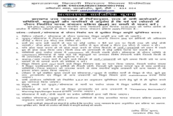 सरहुल-रामनवमी जुलूस को लेकर, JBVNL ने जारी की SOP