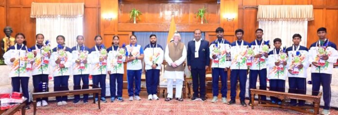 झारखंड: झारखंड के मलखंब खिलाड़ियों ने एक बार फिर राज्य का नाम रोशन किया है। प्रथम खेलो इंडिया जनजातीय खेल 2026 में शानदार प्रदर्शन के बाद खिलाड़ियों ने लोकभवन में राज्यपाल संतोष कुमार गंगवार से शिष्टाचार मुलाकात की।