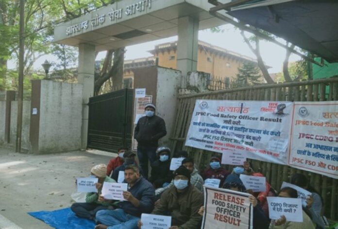 झारखंड: जेपीएससी द्वारा आयोजित फूड सेफ्टी ऑफिसर (FSO) और CDPO मुख्य परीक्षा का रिजल्ट 16 महीने से लंबित है। परीक्षा परिणाम जारी करने में देरी से नाराज सैंकड़ों अभ्यर्थी एक बार फिर जेल पार्क स्थित जेपीएससी कार्यालय के बाहर धरना पर बैठे हैं और जेपीएससी के खिलाफ नारेबाजी कर रहे हैं। अभ्यर्थी जल्द से जल्द दोनों परीक्षाओं का रिजल्ट जारी करने की मांग कर रहे हैं।