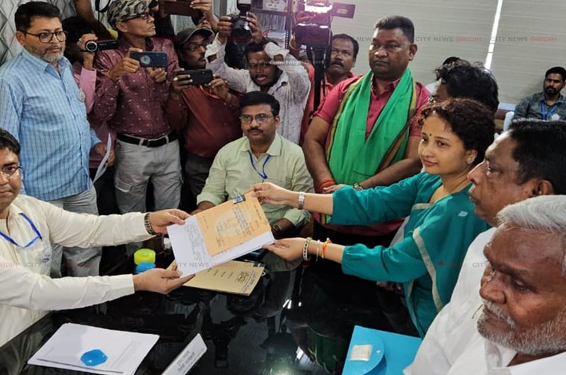 पूर्व मुख्यमंत्री हेमंत सोरेन की धर्मपत्नी कल्पना मुर्मू सोरेन गांडेय विधानसभा सीट के लिए नामांकन पत्र दाखिल करने गिरिडीह समाहरणालय पहुंची | कल्पना झामुमो की उम्मीदवार हैं। रविवार देर शाम को ही वह गिरिडीह पहुँच गयी थी। सोमवार को नामांकन पर्चा भरने के लिए वह उत्सव उपवन से लाव लश्कर के साथ सीधे समाहरणालय पहुंची । जहां 31 गांडेय निर्वाचन पदाधिकारी गुलाम समदानी के समक्ष अपना नामांकन पर्चा दाखिल किया ।मौक़े पर सूबे के मुख्यमंत्री चंपई सोरेन ,राज्यसभा सांसद डॉक्टर सरफराज अहमद, मंत्री बादल पत्र लेख, मंत्री आलमगीर आलम ,मंत्री बेबी देवी, मंत्री मिथिलेश ठाकुर , सदर विधायक सुदीब्य कुमार सोनू, बसंत सोरेन, महुआ माजी,माले विधायक बिनोद सिंह सहित झामुमो के कई कद्दावर नेता के अलावा इंडिया ब्लॉक के कई नेता मौजूद थे । नामांकन के उपरांत पपरवाटांड खेल मैदान में सभा का आयोजन किया जाएगा । नामांकन प्रक्रिया के बाद आयोजित जन सभा में वह मुख्यमंत्री के साथ शामिल होंगी । इस दौरान नामांकन को लेकर कार्यकर्त्ताओं में काफी उत्साह देखा जा रहा है । जिले के कार्यकर्ताओं के अलावा समीप के कई जिले के कार्यकर्त्ता भी इस दौरान मौजूद रहें ।