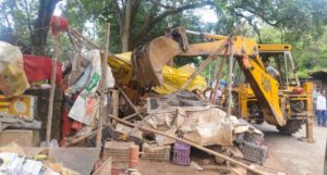 - निगम की टीम ने जेसीबी से अवैध ढांचे गिरा दिए।