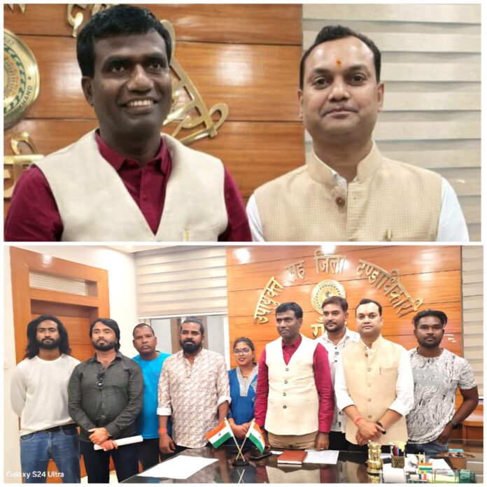 झारखंड: झारखंड में रांची के उपयुक्त श्री मंजुनाथ भजंत्री से प्रसिद्ध समाजसेवी डॉक्टर अनिल कुमार के नेतृत्व में झारखंड के दर्जनों कलाकारों का प्रतिनिधिमंडल का मिलान किया गया जिसमें मुलाकात में कलाकारों ने एक ज्ञापन सौंपते हुए झारखंडी लोकगीत में लगातार बढ़ रही अश्लीलता और सांस्कृतिक प्रदूषण पर गहरी चिंता जताई। उन्होंने इस विषय पर प्रशासन से सख्त रोक लगाने की मांग की है।