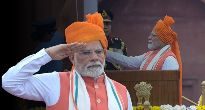 नई दिल्ली : शुक्रवार 15 अगस्त को 79वें स्वतंत्रता दिवस के अवसर पर प्रधानमंत्री नरेंद्र मोदी ने लाल किले के प्राचीन से राष्ट्रीय ध्वज फहराया और देशवासियों को संबोधित किया। तिरंगा फहराने के बाद पीएम मोदी ने यह संदेश दिया कि आज पूरा देश तिरंगे के रंग में रंगा हुआ है और उन्होंने गर्व से कहा-“भारत के हर कोने से चाहे रेगिस्तान हो, हिमालय की चोटियां, समुद्र के तट हो या घनी आबादी वाले इलाके, हर जगह से एक ही आवाज आ रही है एक ही जयकारा गूंज रहा है- हमारे प्राण से भी प्यारी मातृभूमि का जयगान”।