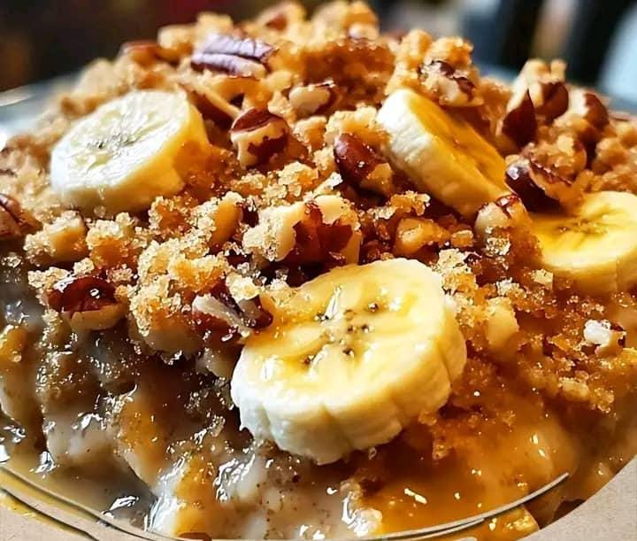 6. अंत में तैयार किया हुआ ओट्स वाला मिश्रण (टॉपिंग) केले के ऊपर डालें।
