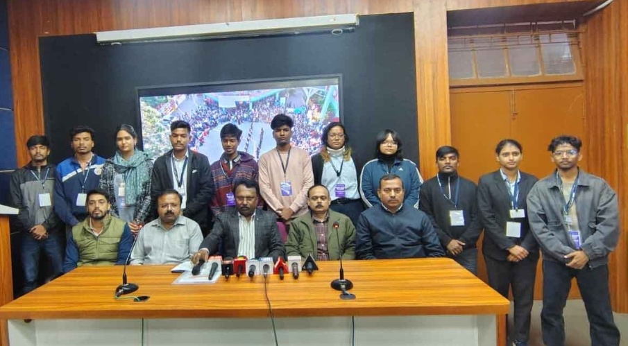 प्रेस कॉन्फ्रेंस में जॉय चौधरी (फेस्ट कॉर्डिनेटर), प्रो. शिव कुमार (IQAC), डॉ संजय कुमार (डीएसडब्लू), डॉ अभिजीत डे (बीबीए विभागाध्यक्ष), सचिंद्र नाथ मिश्रा (अंग्रेजी विभागाध्यक्ष) सहित कोर कमेटी के मेंबर्स मौजूद थे। उन्होंने फेस्ट की रूपरेखा और प्रमुख कार्यक्रमों की जानकारी साझा की।