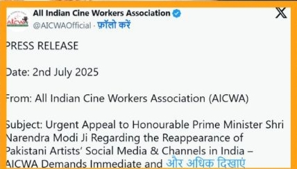 AICWA: PM मोदी से बड़ी मांग की जाने की खबर आ रही है, कहा जा रहा है कि शहीदों की कुर्बानी का अपमान हो रहा है और वहीं, पाकिस्तानी कलाकारों से बैन हटाने पर भी फिल्म संघ भड़क रहे है।