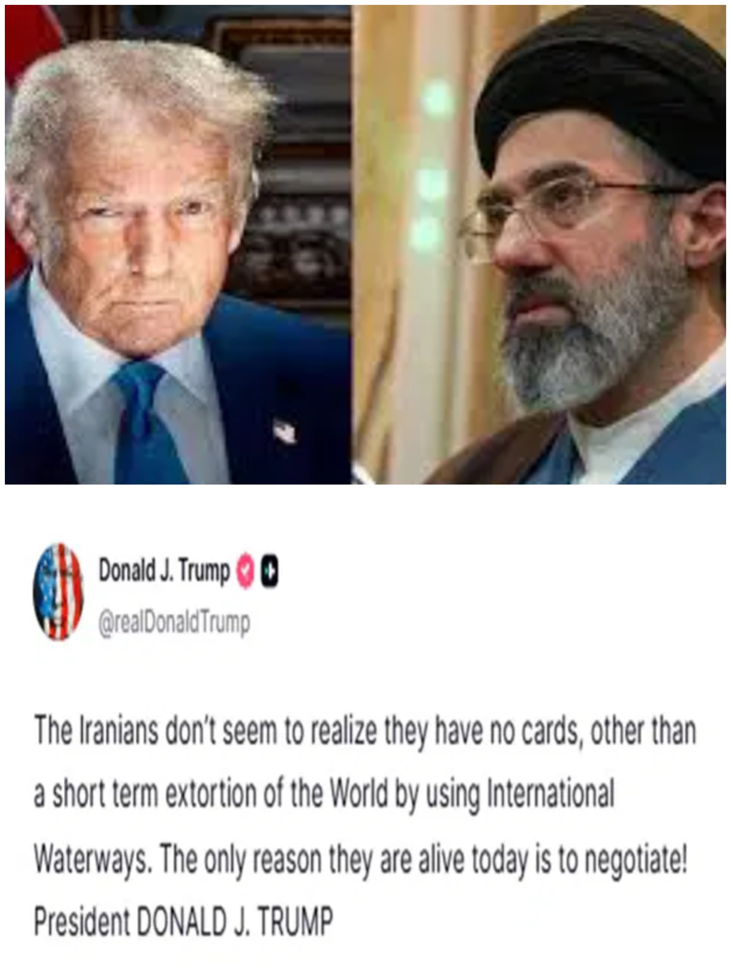 इस बातचीत से ठीक पहले अमेरिकी राष्ट्रपति डोनाल्ड ट्रंप ने ईरान को धमकी दी है। ट्रंप ने अपने सोशल मीडिया प्लेटफॉर्म टूथ सोशल पर पोस्ट करते हुए कहा कि ईरान के पास सीमित विकल्प हैं और वह केवल बातचीत के जरिए ही आगे बढ़ सकता है। उन्होंने आरोप लगाया कि ईरान अंतरराष्ट्रीय जलमार्ग स्ट्रेट ऑफ होर्मुज के जरिए दुनिया पर दबाव बनाने की कोशिश कर रहा है।